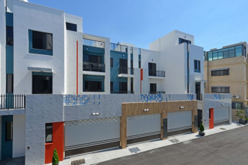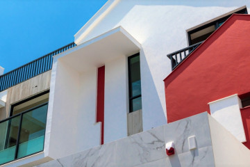 一整排的高質感別墅,白色的外牆塗料耐看也抗污