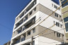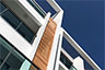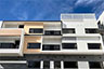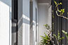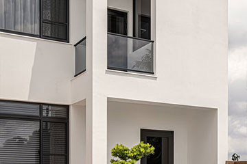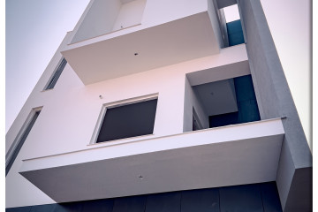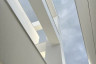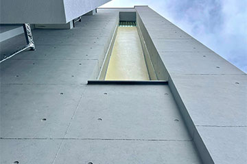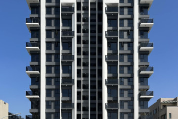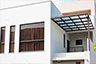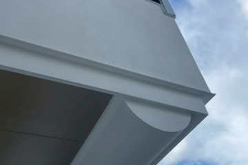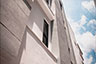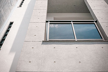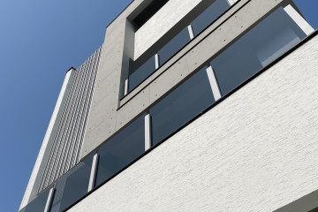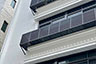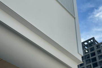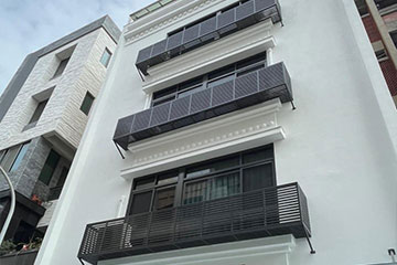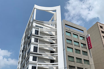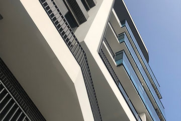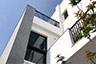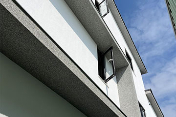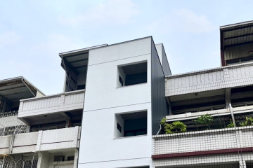 頂層特殊的屋簷及窗框設計,選用德國抗污塗料塗裝,與其他建材的搭配下,給予視覺合宜的留白。