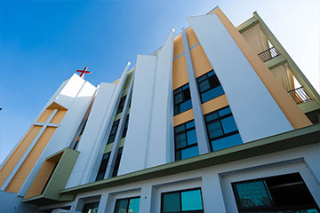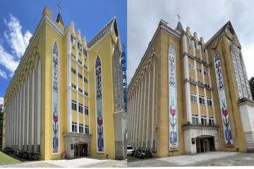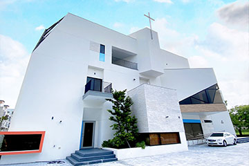 已完成的建築體,搭配簡樸純白的Südwest德國原裝進口塗料,聳立於藍天白雲之間,神聖耀眼而莊嚴。