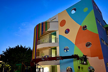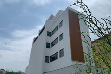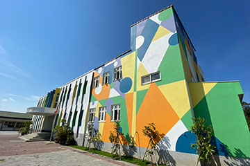 外牆部分採用塗料,局部點綴,色彩溫馨親切不單調,讓整個建築活潑了起來!