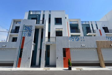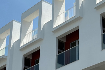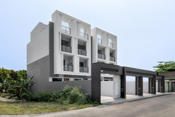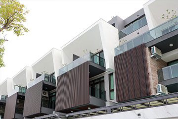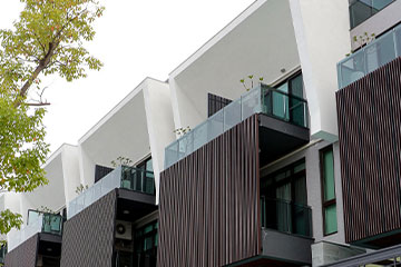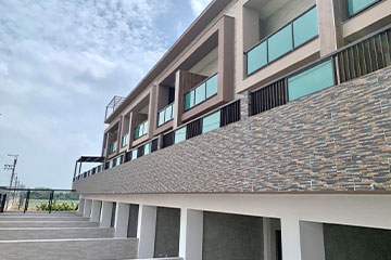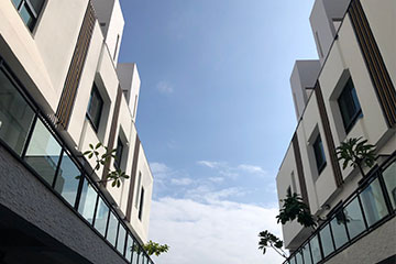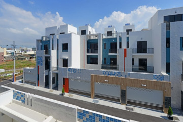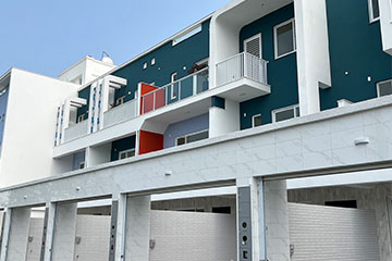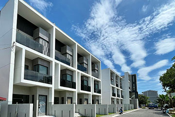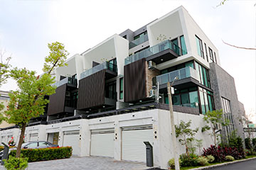 一整排的高質感別墅,白色的外牆塗料耐看也抗污