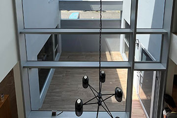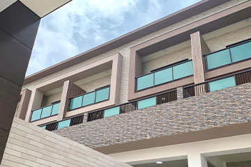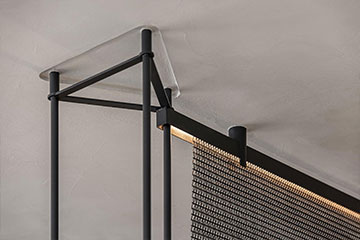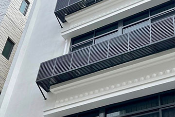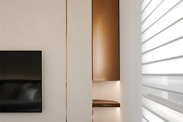 並搭配淺溝線條、組合精緻鋁格柵,