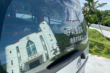 外觀的白色是活水泉源 - 進口建材磁磚的二丁掛,最特別的是上面還有聖經的經文唷!