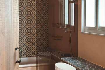 白色塗料的抖擻,搭配暖色調磁磚,相得益彰。