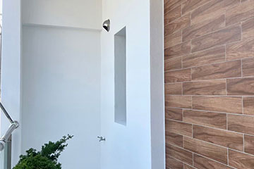外牆部分採用塗料,跳脫出樸素又不失格調的質感。